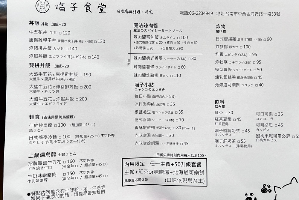台南喵子食堂菜單