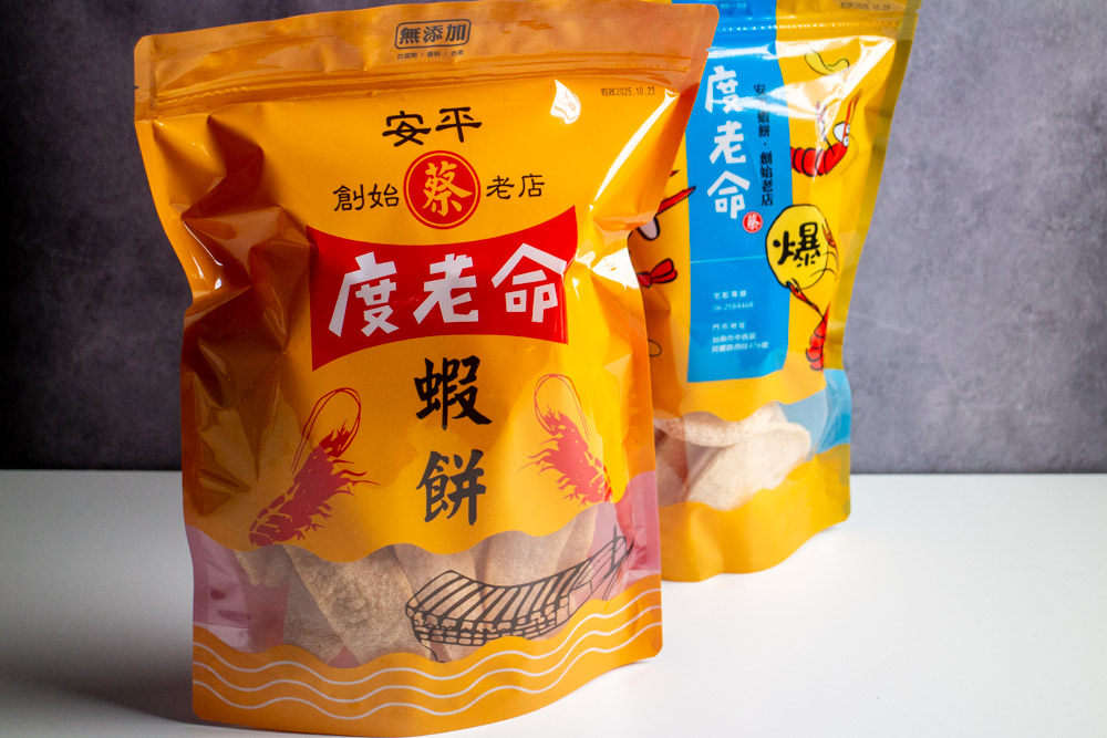 以往去台南安平要買蝦餅時,五十咩很愛海楓蝦餅。現在又多了一家不錯的口袋名單【安平度老命蝦餅】。不過,由於這家店的營業時間不固定,建議想嘗鮮的朋友,務必關注其官方粉專或Line齁。度老命蝦餅只販售原味蝦餅,提供了兩種調理方式:追求酥脆、香氣濃郁和涮嘴感的朋友,可以選擇略帶油感的「傳統炸蝦餅」;而喜歡清爽、不油膩口感的人,則可以選擇類似米餅、入口後會稍微黏口的「非油炸爆蝦餅」。風味各有特色,無論搭配氣泡飲或茶飲都很合適,是台南伴手禮的好選擇。