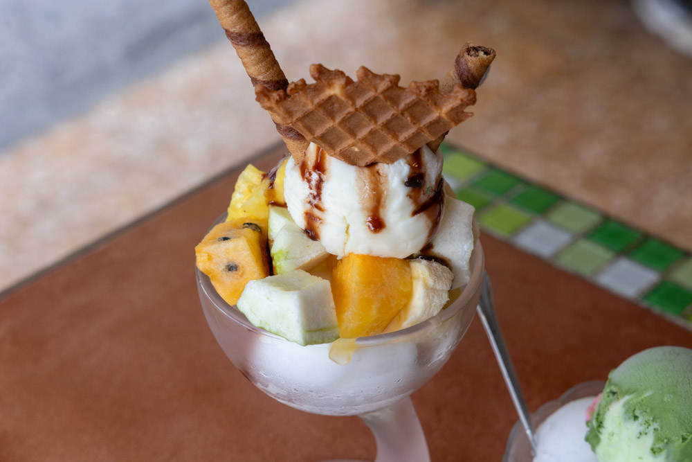 常美冰店是一間在高雄旗山,以香蕉冰為基礎的老冰店。店裡有『香蕉冰品』、『冰淇淋』、『聖代』、『傳統冰棒』四個系列為主。五十咩吃過的冰品都是以香蕉冰的香甜為基本味道,再依照類型,會搭配上不同的冰品配料或是水果。有的看起來傳統懷舊、有的繽紛多彩、有的ㄏ一花吸睛。若是要到旗山活動的朋友,這間收藏起來很可以。