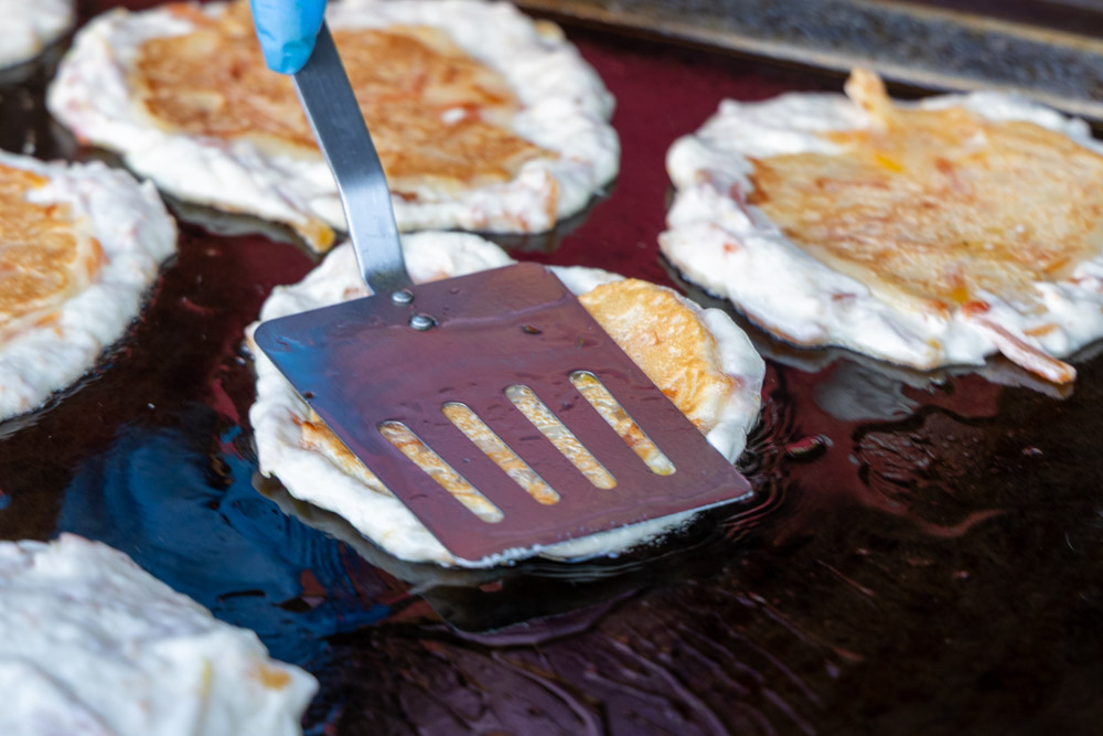 除了粄條,美濃人的早餐還有這一味!開業三十餘年的「秀慧木瓜粄」,隱身在中正路民宅,憑著老闆娘滿滿的活力與獨門「木瓜粄」收服在地人的胃。選用六分熟木瓜絲搭配在來米漿煎至金黃,口感介於發粿與甜不辣之間,帶有木瓜清甜與焦香。店內還有蘿蔔粄、客家粽等多種特色選擇,是想要深度體驗美濃客家風情不可錯過的在地老店。