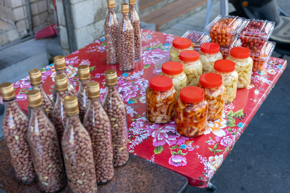 此外,店門口也會販售季節性的在地農產,造訪當天正值白玉蘿蔔季,現場也擺放了幾罐誘人的醃蘿蔔供選購。