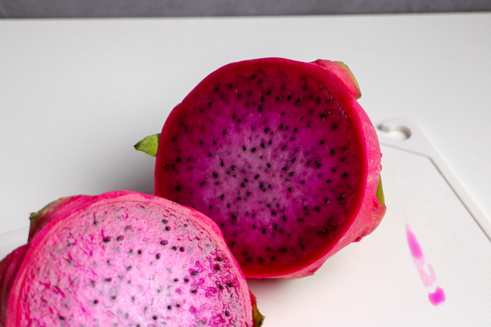 紅白雙色火龍果,粉紅漸層色果肉的火龍果,兼具紅肉甜美與白肉清脆