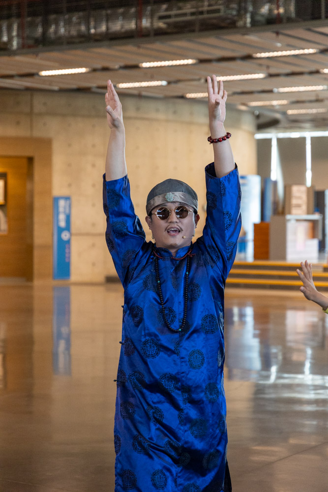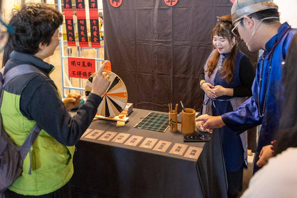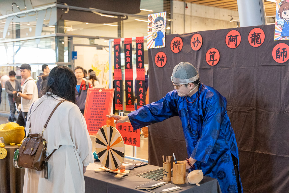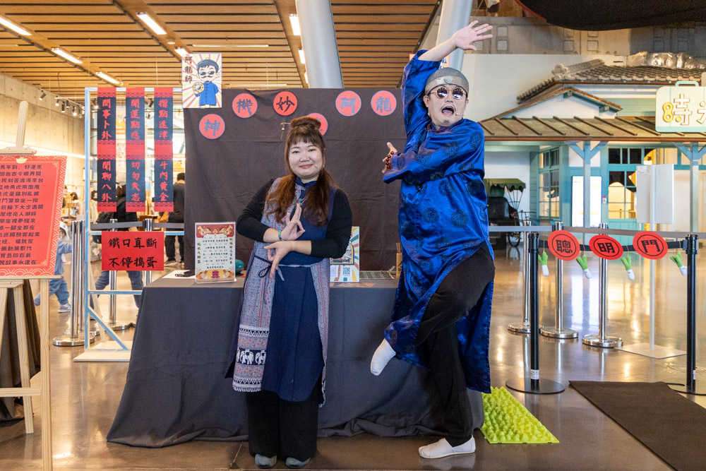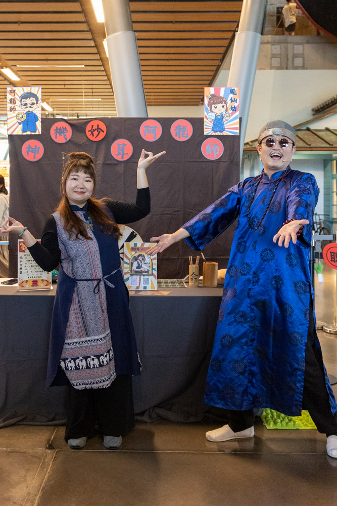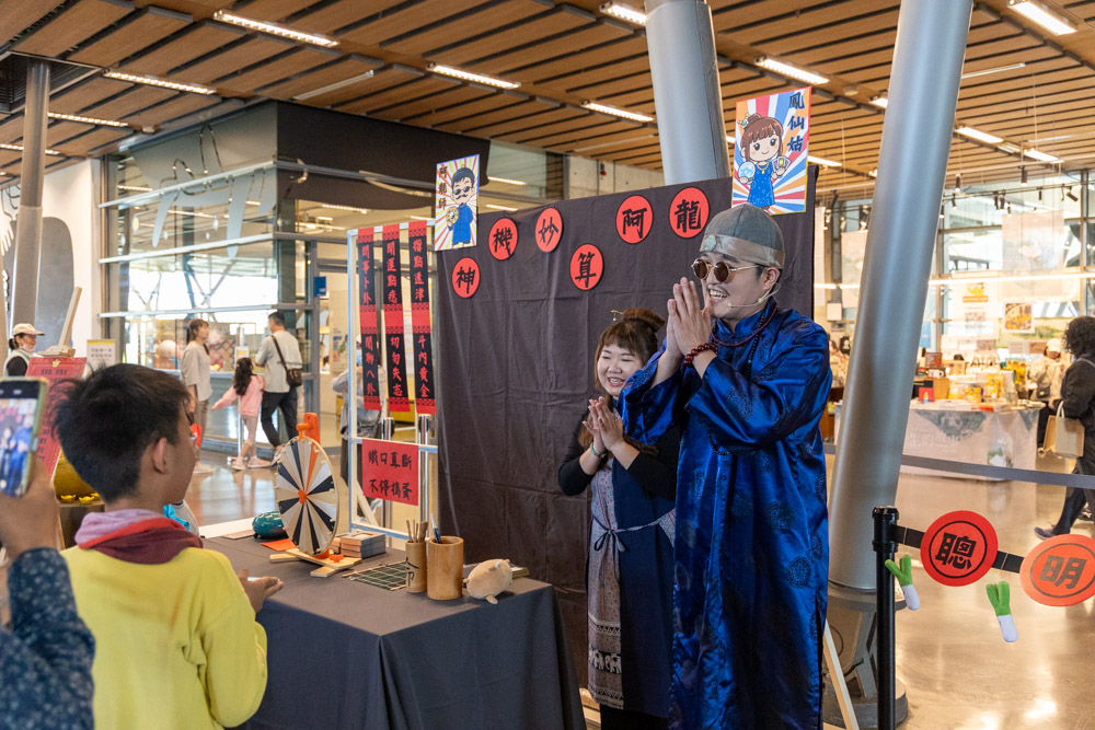 不過,解咒需要大家集氣祈福!現場的大小朋友們紛紛排隊參加「關卡挑戰」。有人在台上與阿龍師火熱 PK,有人忙著考驗平衡與協調能力。只要挑戰成功,不僅能拿到阿龍師加持的神秘小物,還能獲得鳳仙姑的親自祝福!